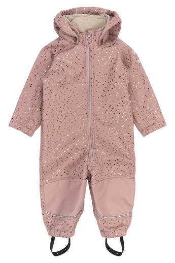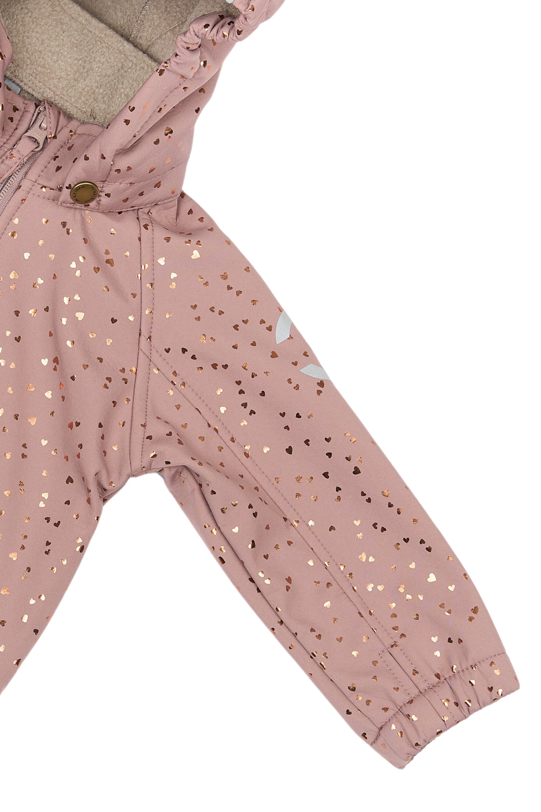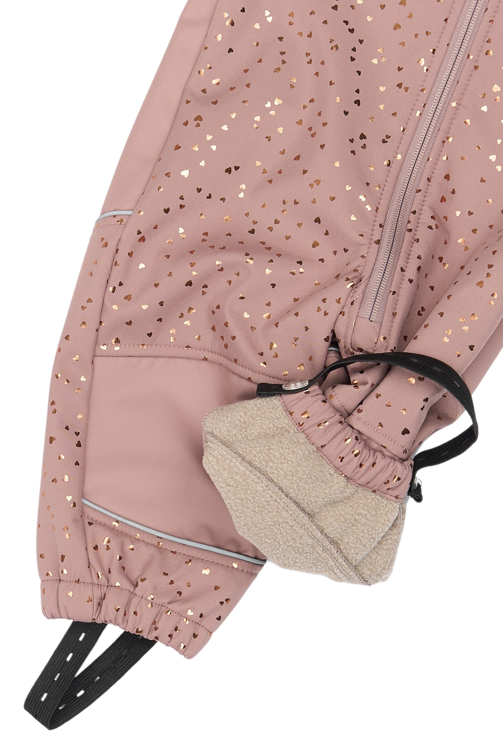 Mikk-Line - Sød softshelldragt i rosa med guldhjerter, twilight mauve