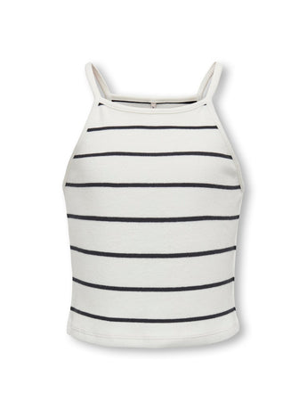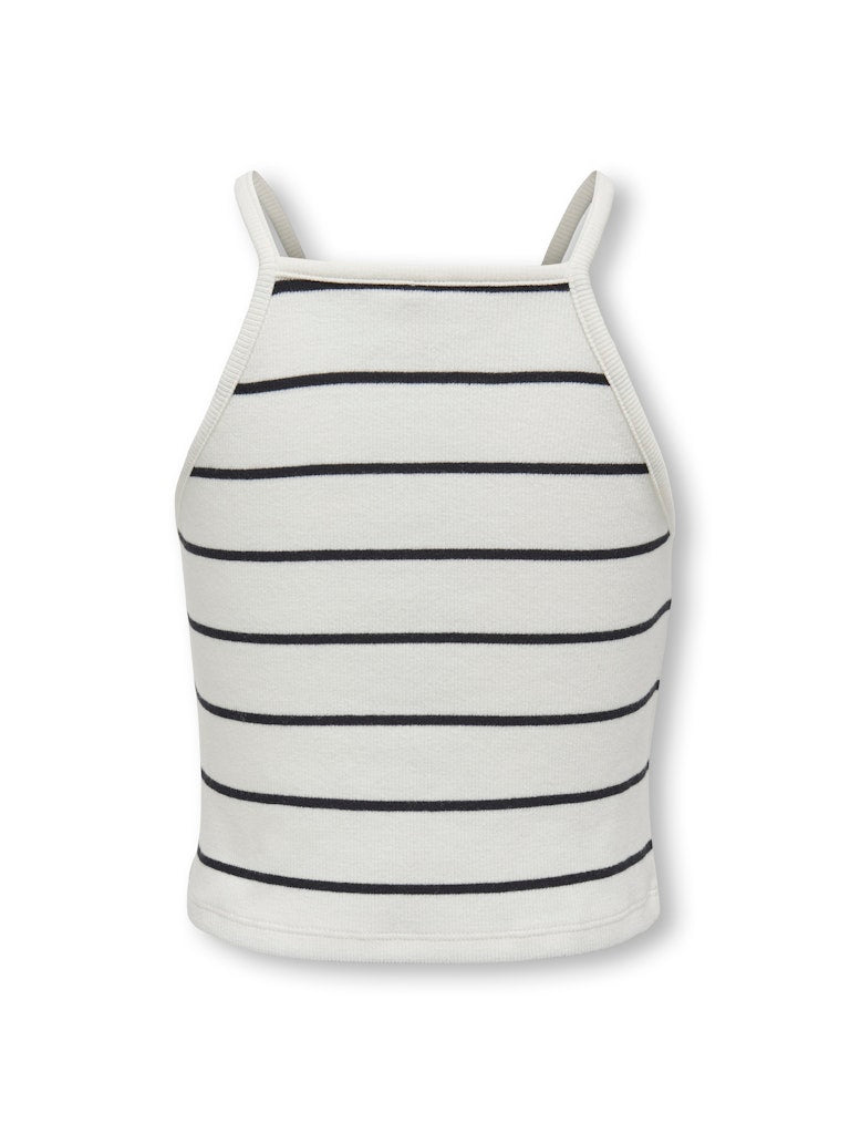 Med denne søde sommerlige top i hvid med flotte, sorte striber er dit barn klar til sommeren! Toppen har smalle stropper og en tæt pasform. Perfekt hverdagstop!