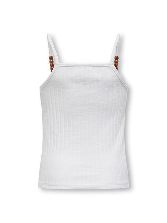 Denne skønne top i elegant offwhite med spaghettistropper med perledetalje og firkantet udskæring er det oplagte valg for den stilbevidste pige til sommer, der elsker lyse farver og enkle snit.