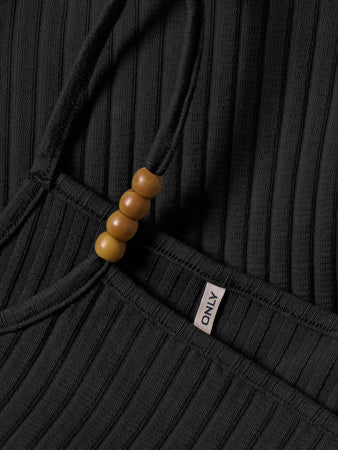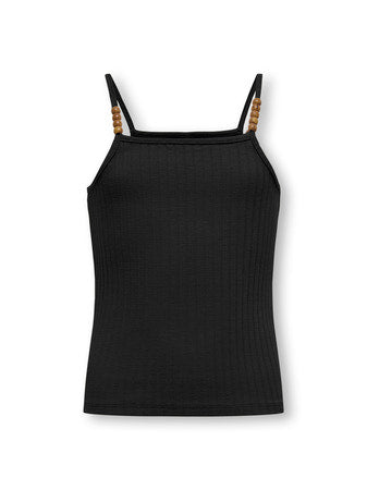 Denne skønne top i sort farve med spaghettistropper med perledetalje og firkantet udskæring er det oplagte valg for den stilbevidste pige til sommer.