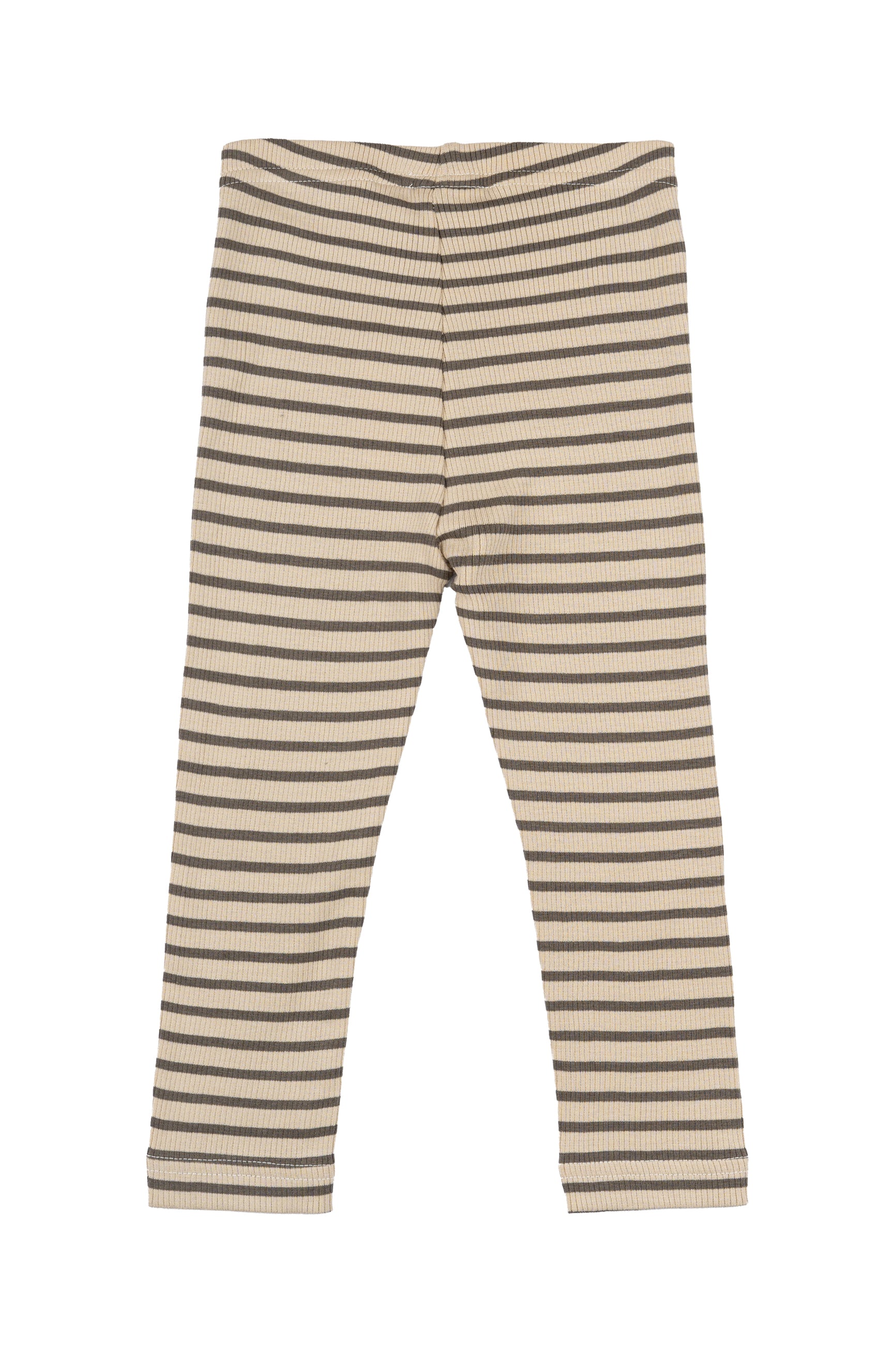 Disse fine stribede leggings fra Petit Piao i farvekombinationen Earth Brown/Dark Off White er både bløde, strækbare og perfekte til hverdagsbrug. Fremstillet i en skøn blanding af 48% bomuld, 48% modal og 4% elastan, hvilket gør dem lette, åndbare og behagelige mod huden.