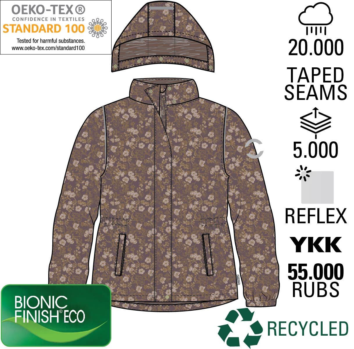 Mikk-Line - vinter jakke med blomsterprint, lilla