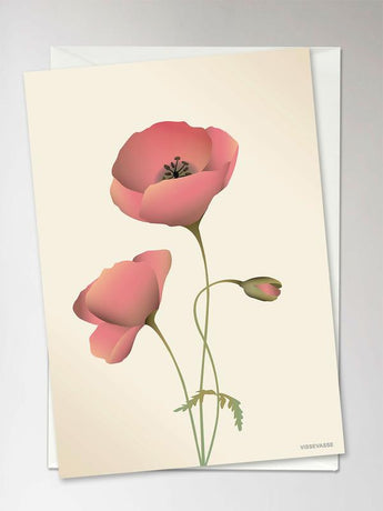 Et virkelig smukt kort, der illustrerer de skrøbelige valmuer med silkepapirtynde blade, som står og svajer så fint i vinden og sætter kulør på naturen. Du finder dem blandt andet på stranden eller i vejkanten, men lad dem endelig stå. Bladene falder nemt af, når du plukker dem.