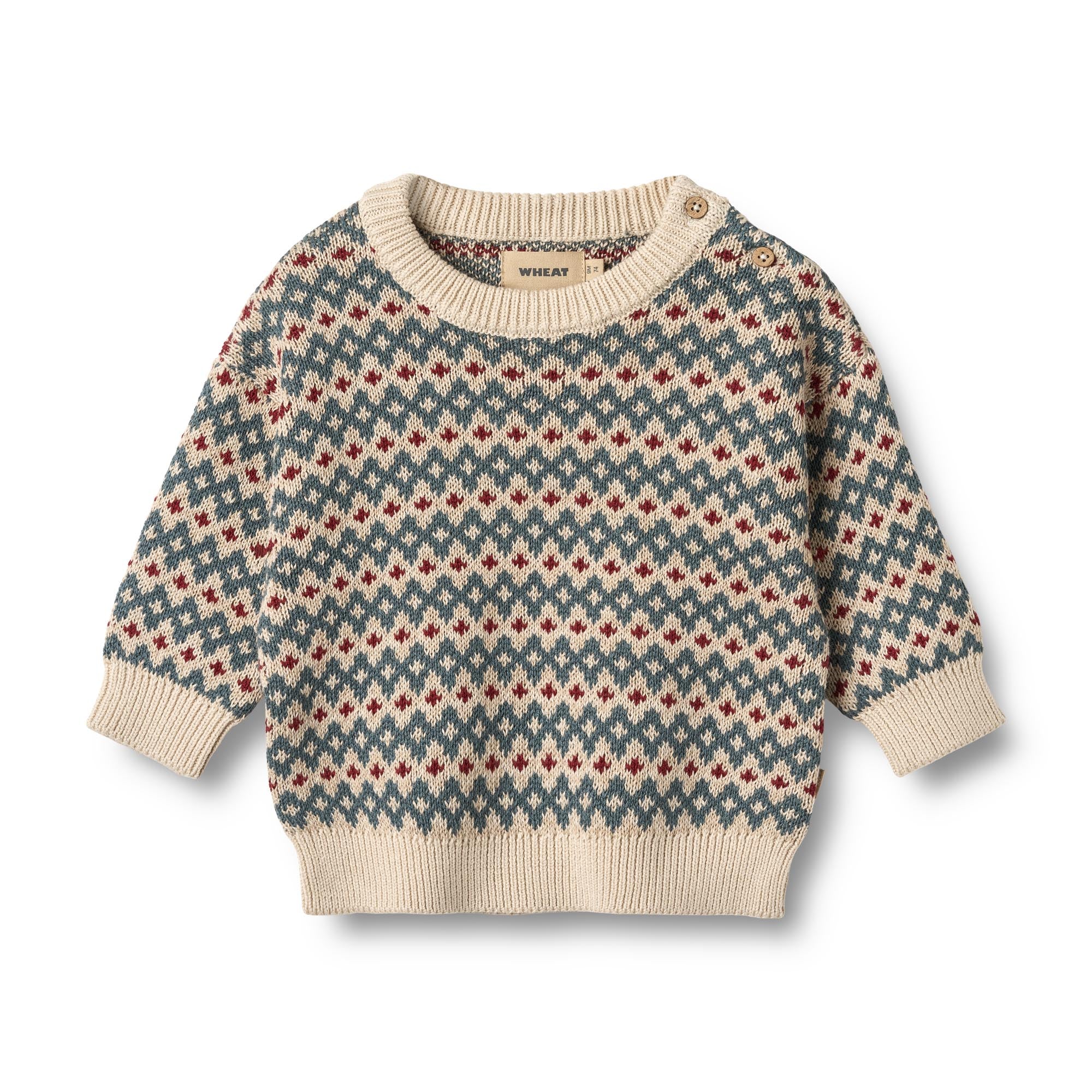 Wheats strik er en tro følgesvend i de kolde efterårs- og vintermåneder, da det er blødt og behageligt for din baby at have på uden nogen form for kløe. Wheat strik har et klassisk look med en afslappet pasform, der gør det nemt at style med et par bukser eller over en kjole alt efter vejr og begivenhed.