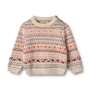 Mangler dut barn også en blød og farverig sweater til efteråret? Så er denne sweater fra Wheat det oplagte valg. Denne skønne striktrøje i multifarve kombinerer klassisk nordisk design med høj komfort og slidstærk kvalitet.