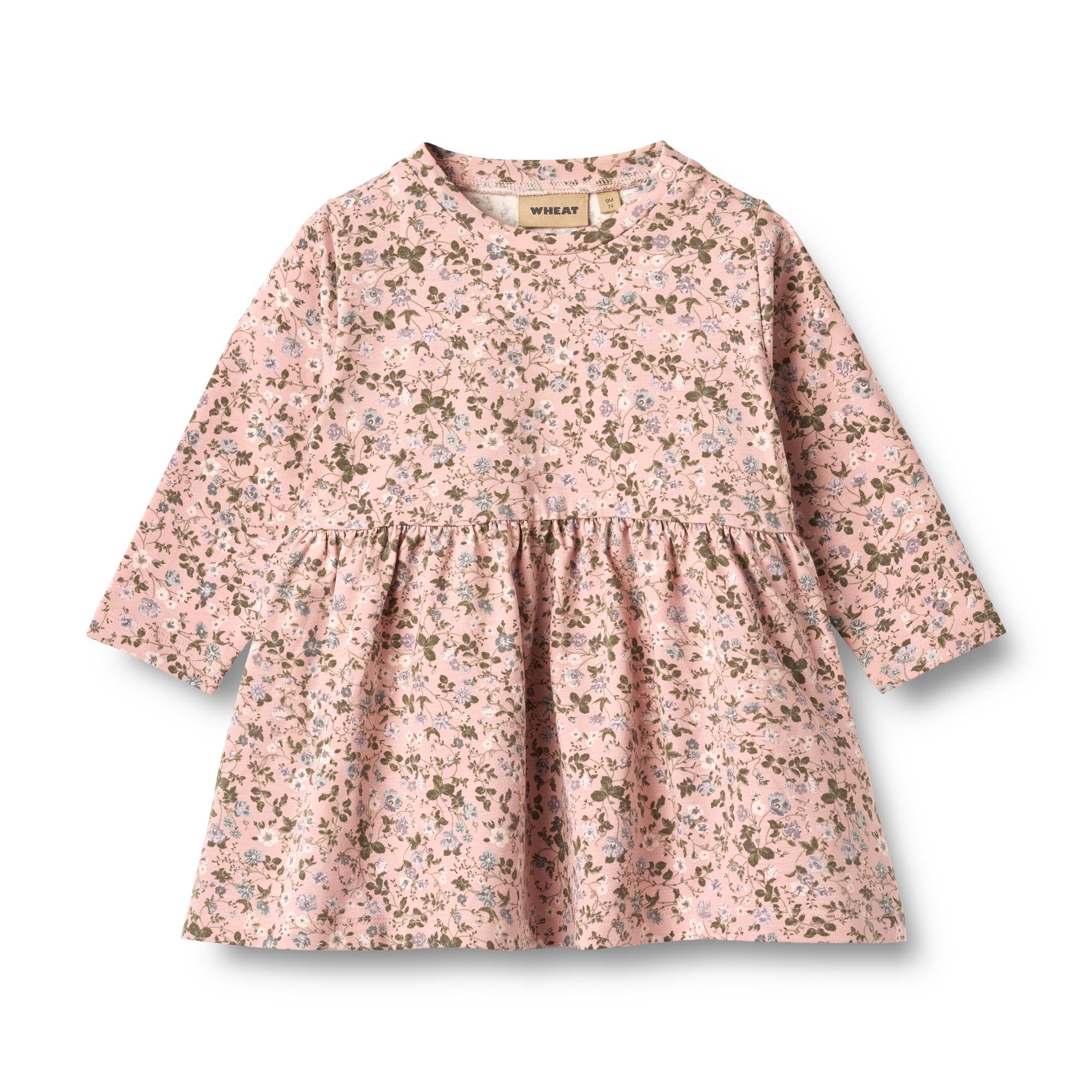 Forkæl den lille derhjemme med denne elegante kjole fra Wheat i farven Rose Powder Flowers. Kjolen er fremstillet i blødt økologisk jersey-materiale og har lange ærmer, hvilket gør den perfekt til de køligere dage. Med en skæring over taljen og smukke samlinger nedenfor, får skørtet en let og luftig vidde - som skabt til leg og bevægelse.