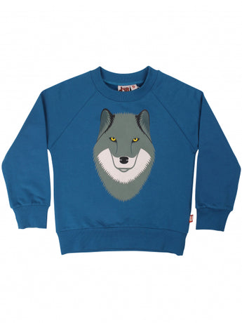 Fra Danefæ finder du denne lækre sweatshirt i flot blå - dusty blue - med en flot ulv. God tyk kvalitet, med dejlig blød børstet bomuld på indersiden - rar at have på. God til både jeans og sweatbukser.