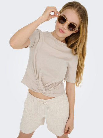 Only Girls - KogRex - T-shirt i sand med elegant knudedetalje