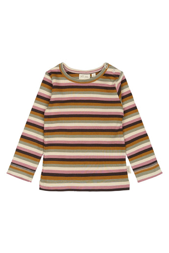 Petit Piao - Flot langærmet T-shirt med striber, rosa/multi
