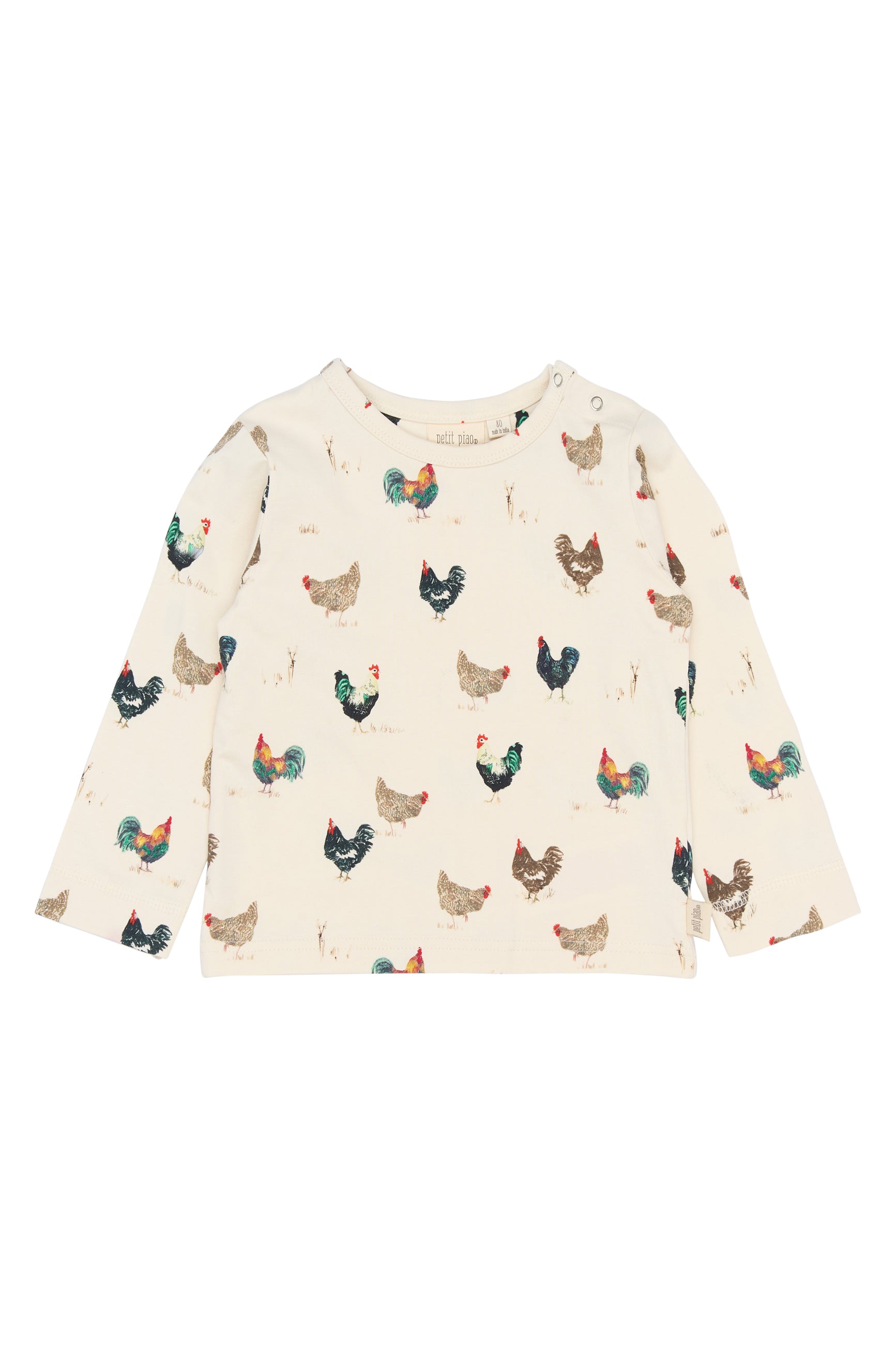 Petit Piao - PPStar - Flot langærmet T-shirt med høns, beige
