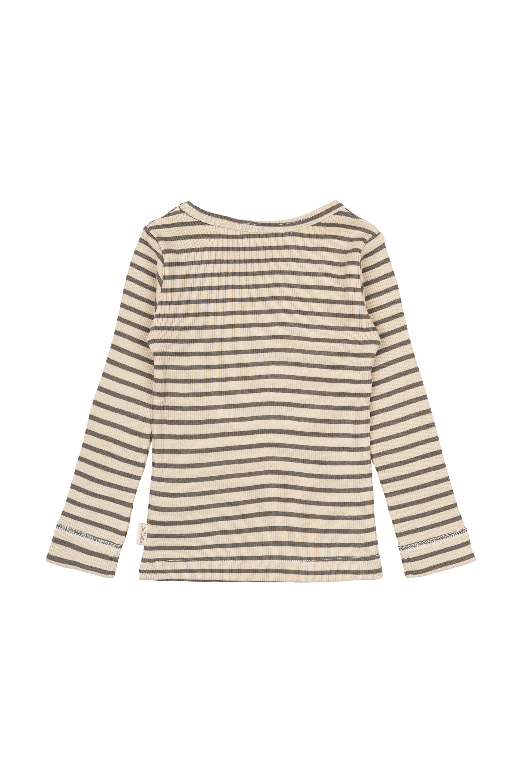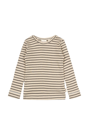 Petit Piao - Skøn langærmet t-shirt med striber i brun og hvid