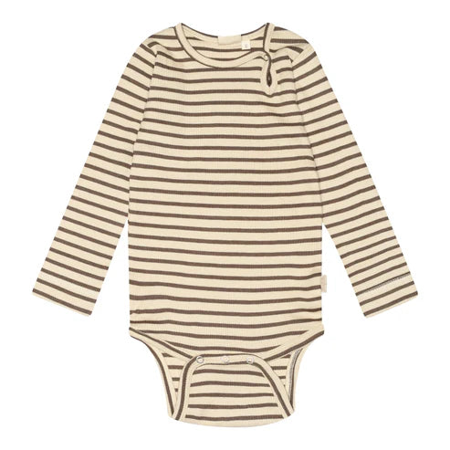 Petit Piao - Stribet body, chocolate brown/dark off white