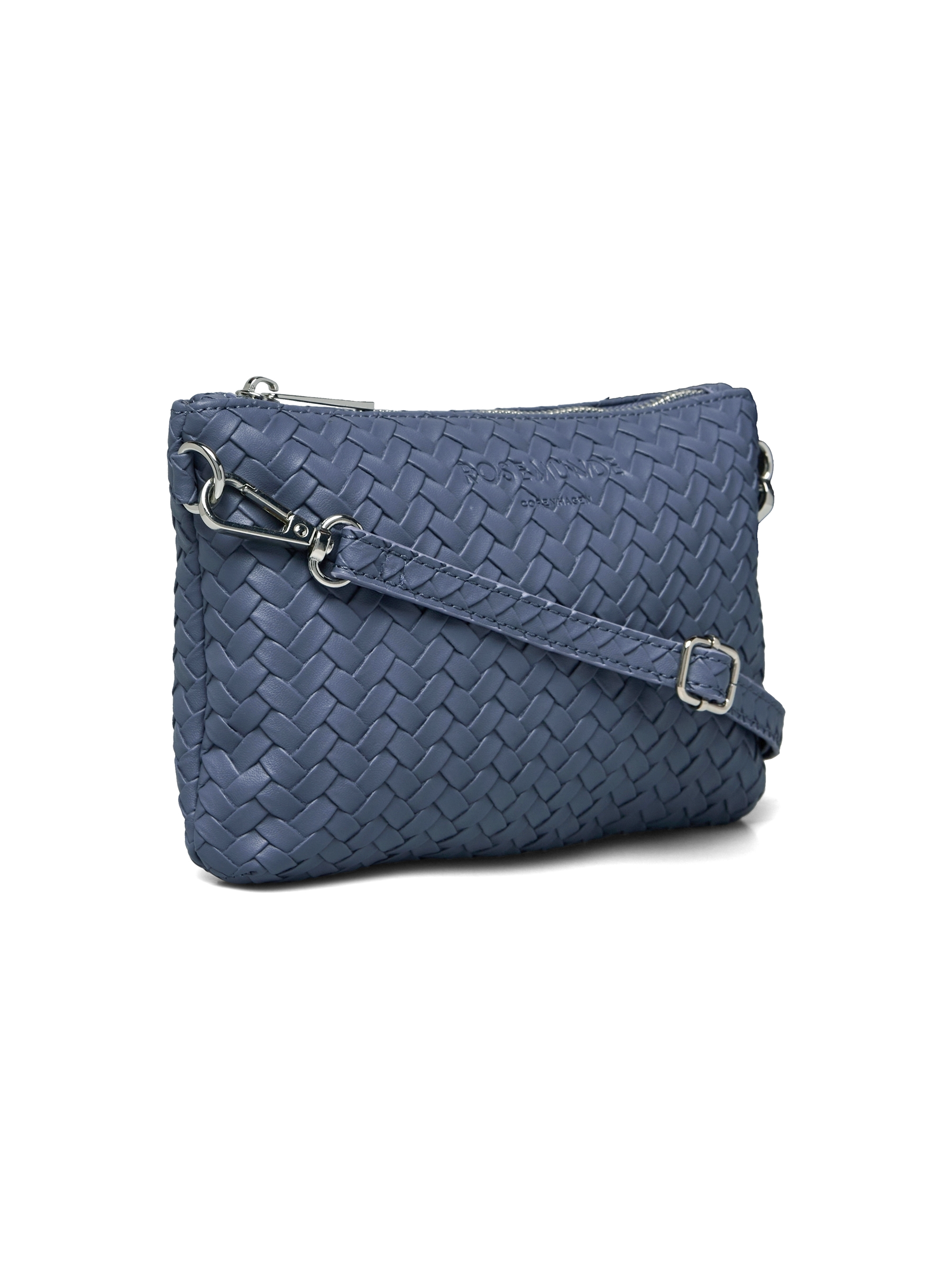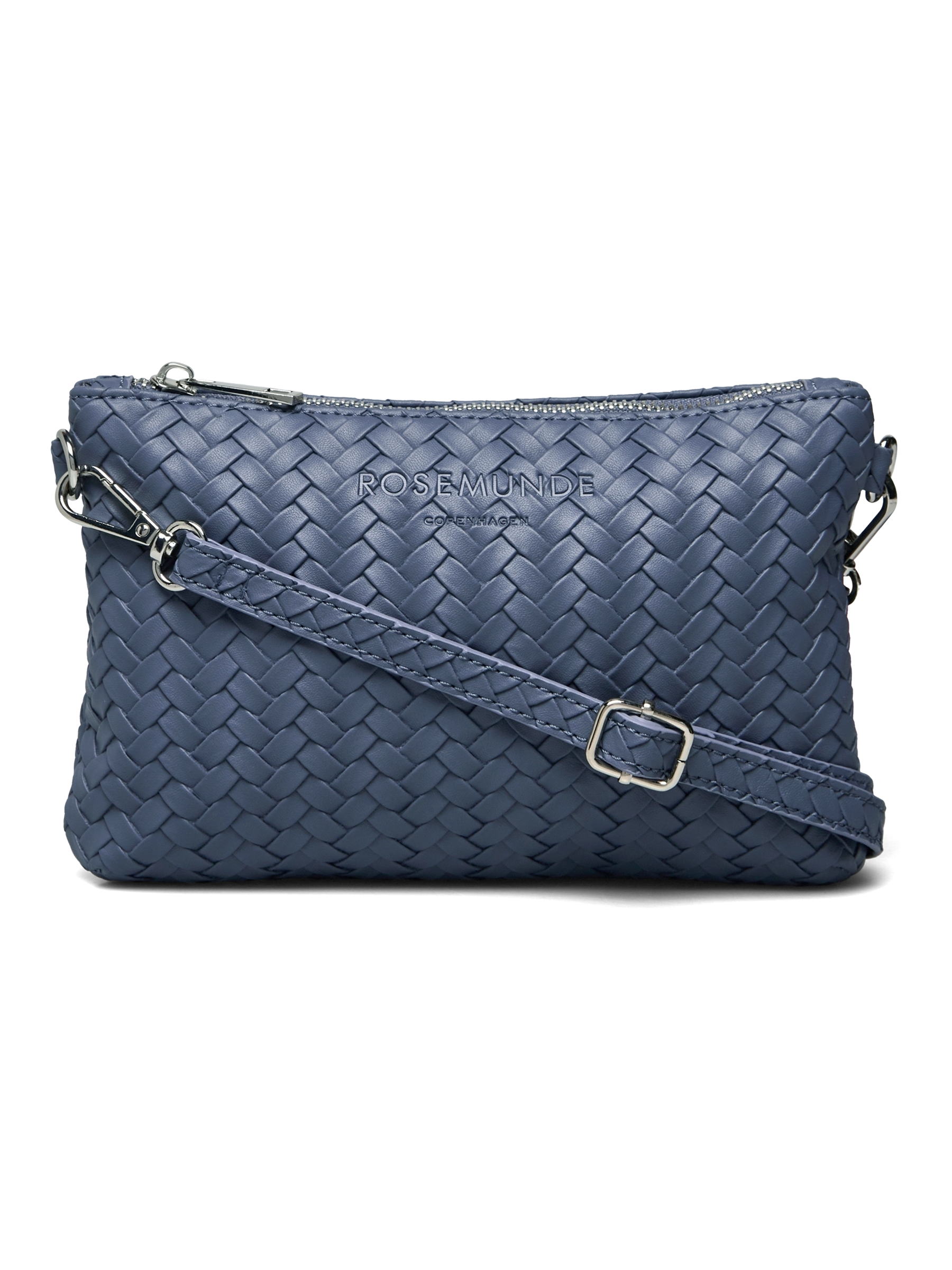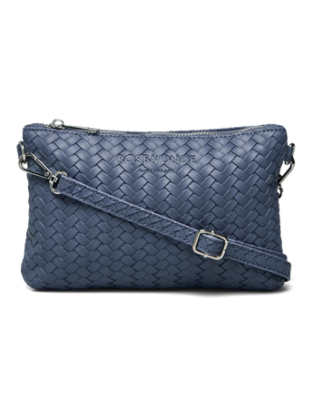 Denne fine lille taske fra Rosemunde er både elegant og praktisk – designet i et smukt fletmønster, der giver et eksklusivt og feminint udtryk. Tasken har aftagelig og justerbar skulderrem, så den kan bæres både over skulderen eller som clutch. Den flotte blå farve giver et frisk pust til ethvert outfit – perfekt til både hverdag og fest.