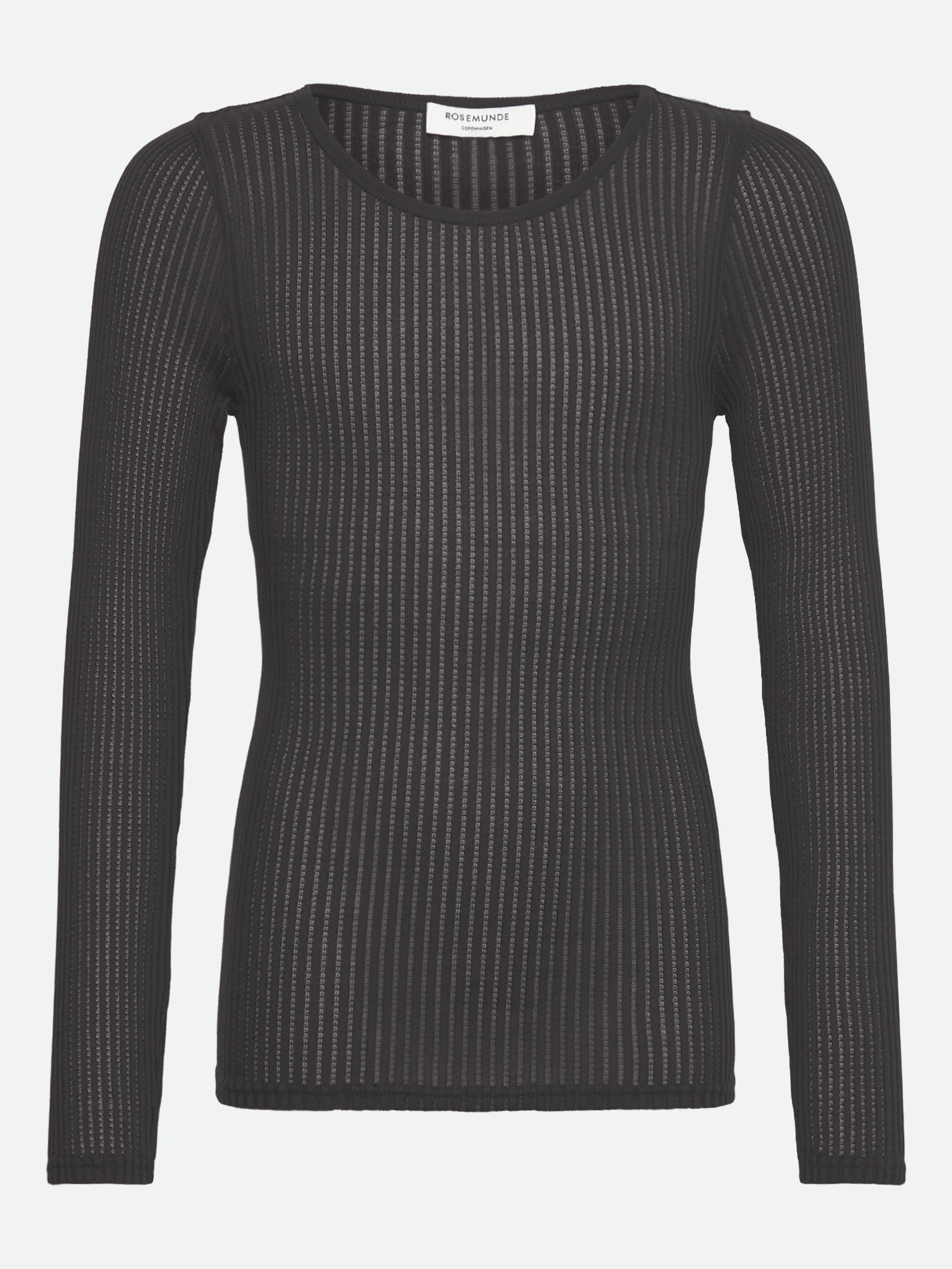 Denne langærmede bluse fra Rosemunde har et feminint og moderne udtryk med transparent, stribet struktur. Den lette og åndbare kvalitet giver et elegant look, som både kan styles alene med en top under eller bruges som lag under en strik eller blazer. En stilfuld bluse, der tilføjer et strejf af eksklusivitet til ethvert outfit – perfekt til både hverdag og særlige anledninger.