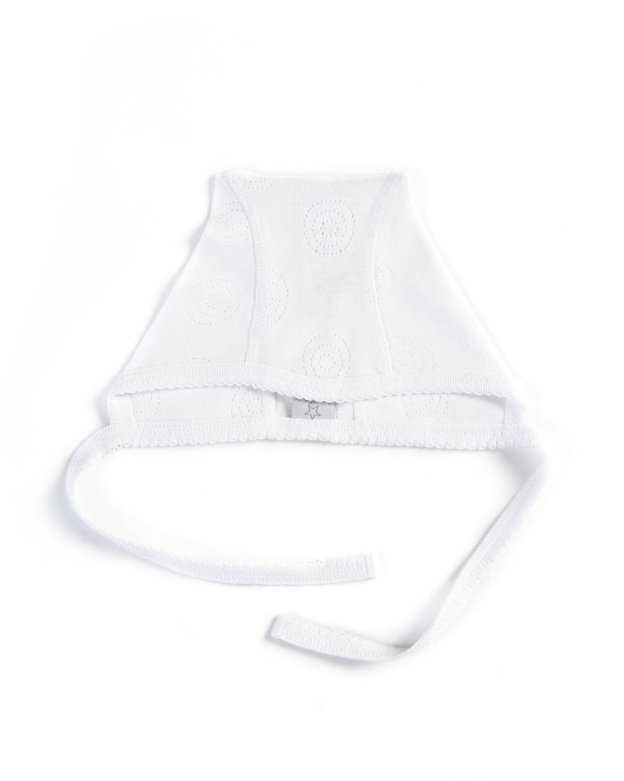 Babyhuer kommer man bare ikke udenom! De små ører fryser let, især de første måneder, hvor baby ikke selv kan regulere sin temperatur, og så er en praktisk hue i hvid, der passer til alle outfits, smart! Huen har et fint cirkel-hulmønster i en smuk hvid farve.