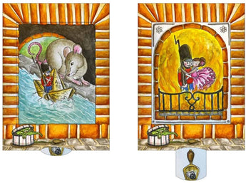 Meget sjovt træk-ud dobbelt postkort - , der ændrer motiv når man trækker i slippen.