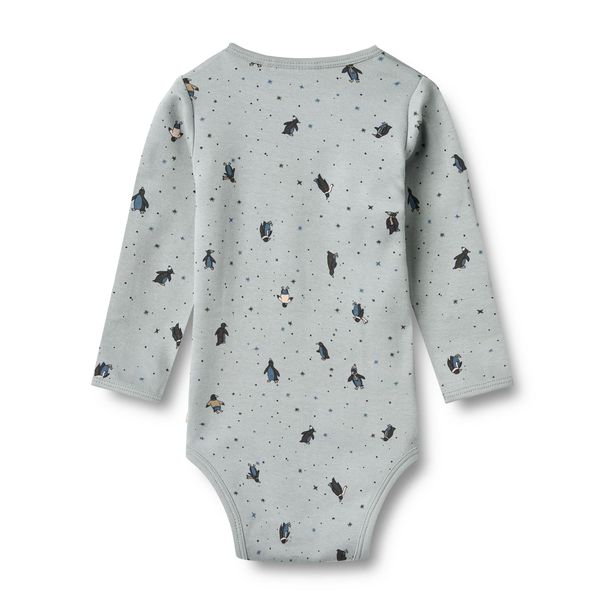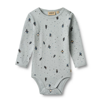 Langærmet rib body Berti med print i blødt økologisk bomuld til din baby. Wheats basis body er en sand klassiker i garderoben, når det kommer til småbørn. Denne body har trykknapper på den ene skulder samt i bunden for bedre komfort, når du skal klæde dit barn på. Brug bodyen som den inderste del i ethvert outfit, da den er blød at have tæt på huden.