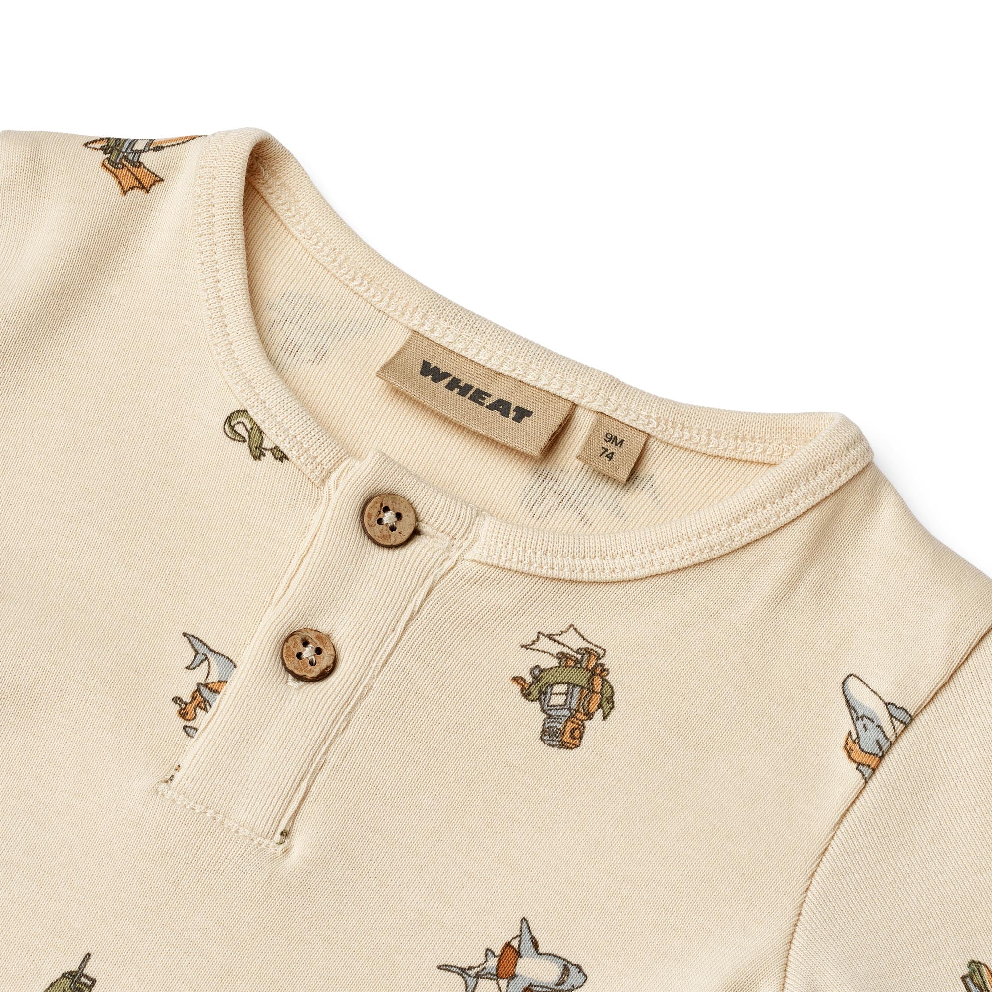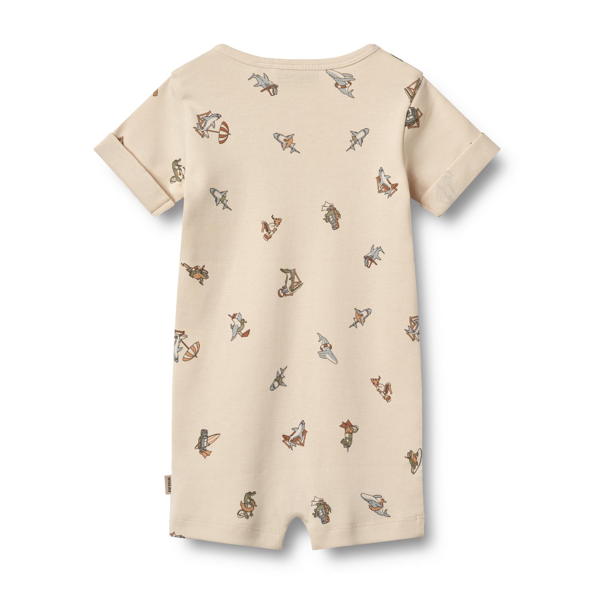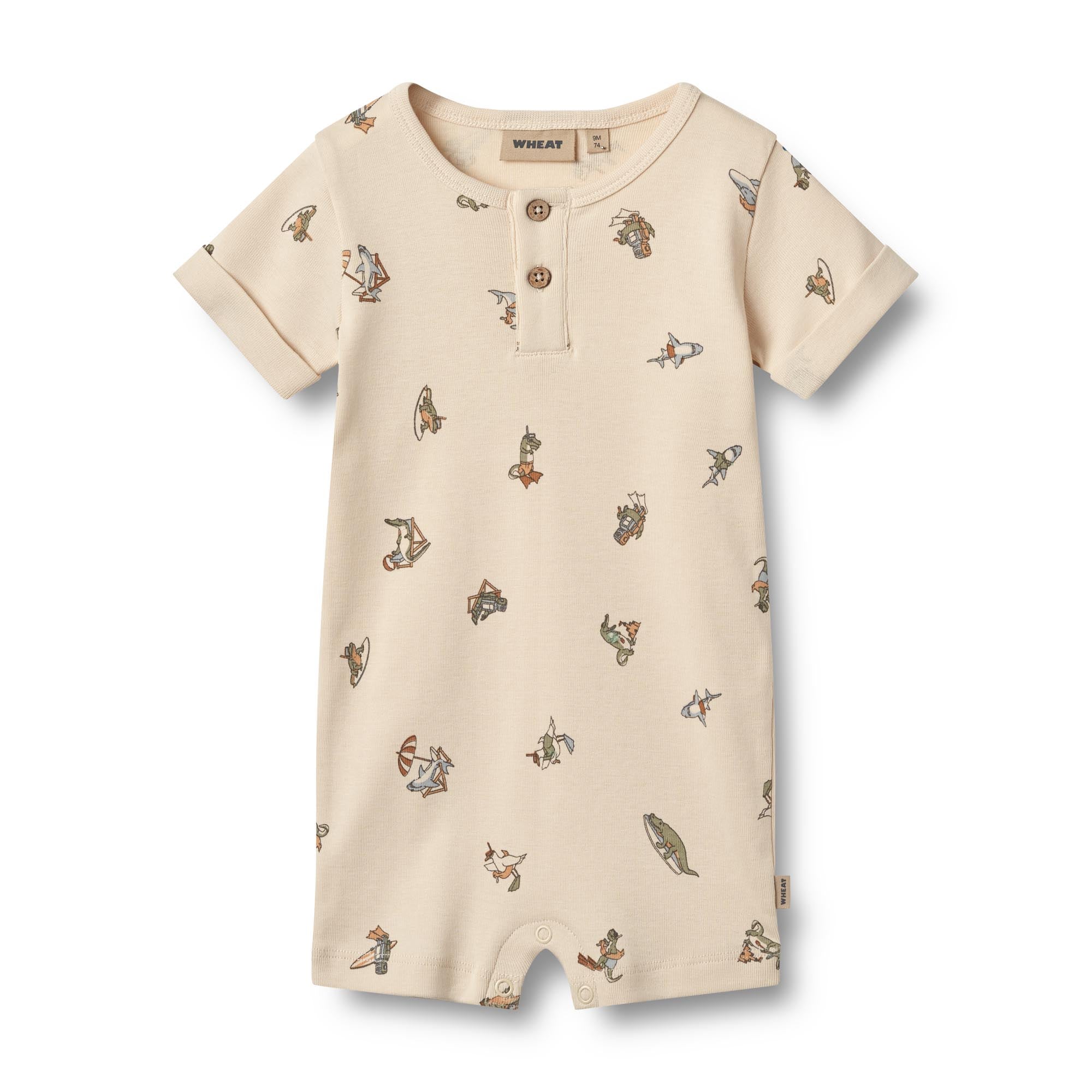 Wheat - Alfred - Sød kortærmet heldragt i offwhite og print
