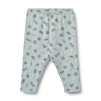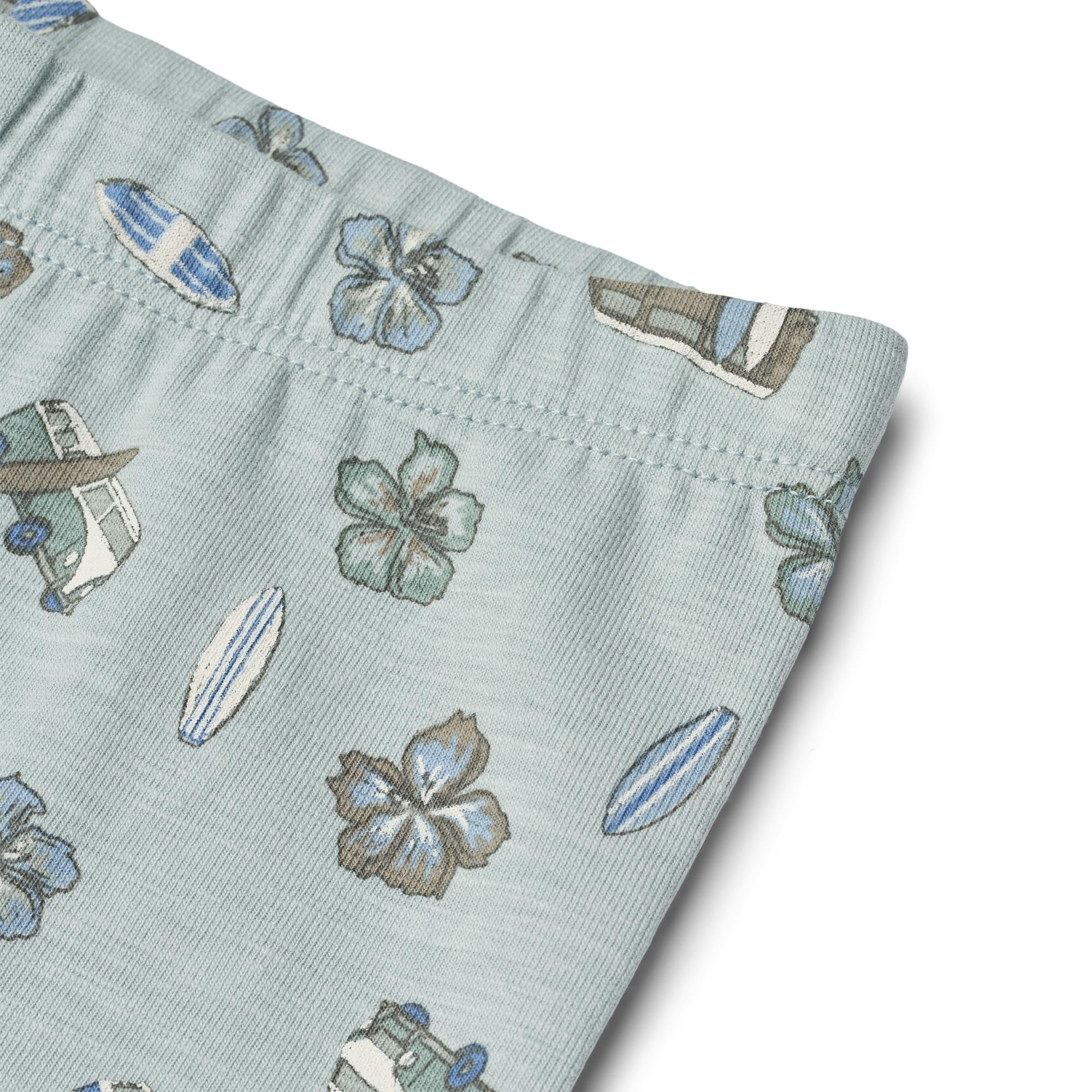 Disse leggings fra Wheat i printet Surf Friends har et sjovt og sommerligt surf-tema, der emmer af strand, palmer og eventyr. De er lavet i en blød og strækbar jerseykvalitet med økologisk bomuld og lidt elastan, som giver god bevægelighed og komfort til de mindste.